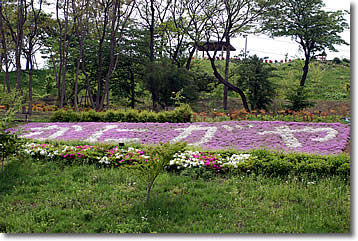 たくさんのシバザクラで公園名が書いてありました