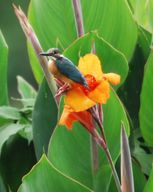 カワセミがカンナの花に留まってくれるとは限りません![]()